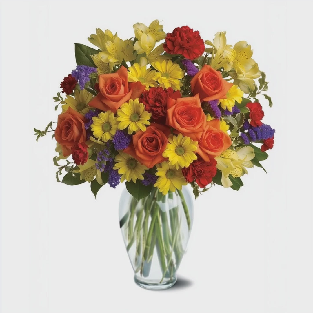 Pour conserver la fraîcheur de votre bouquet, placez-le dans un vase propre avec de l’eau fraîche, en changeant l’eau tous les deux jours. Recoupez les tiges en biais sous l'eau pour une meilleure absorption. Évitez les courants d’air et la chaleur directe pour prolonger la durée de vie de votre arrangement. Le vase est vendu séparément en option « Extra Touch », ajoutant encore plus de charme à ce cadeau floral.