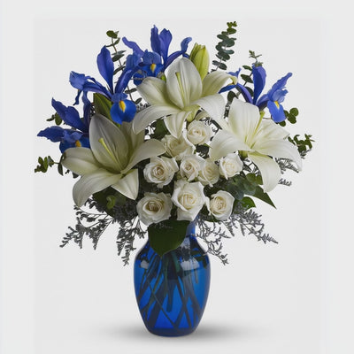Offrez une touche de fraîcheur et d’élégance avec ce bouquet blanc et bleu au contraste harmonieux—parfait pour un anniversaire ou comme cadeau raffiné de Hanoukka. Sa palette lumineuse attire immédiatement le regard et sublime la table, du dîner intime aux célébrations familiales. Chaque tige est sélectionnée pour sa beauté et sa tenue, pour un effet chic qui dure.